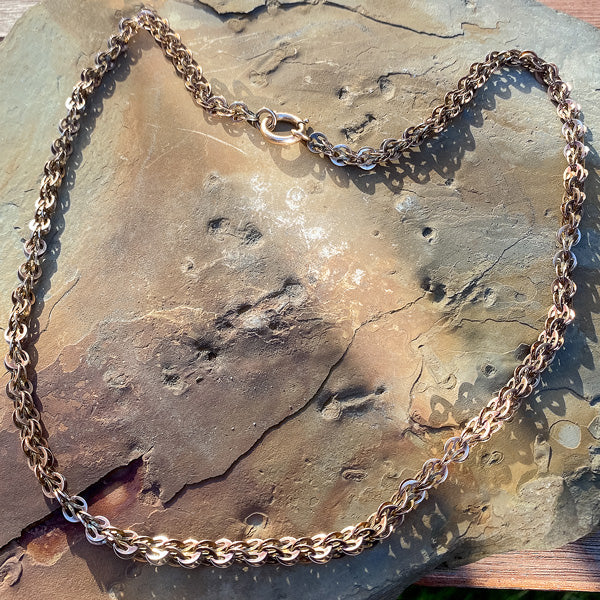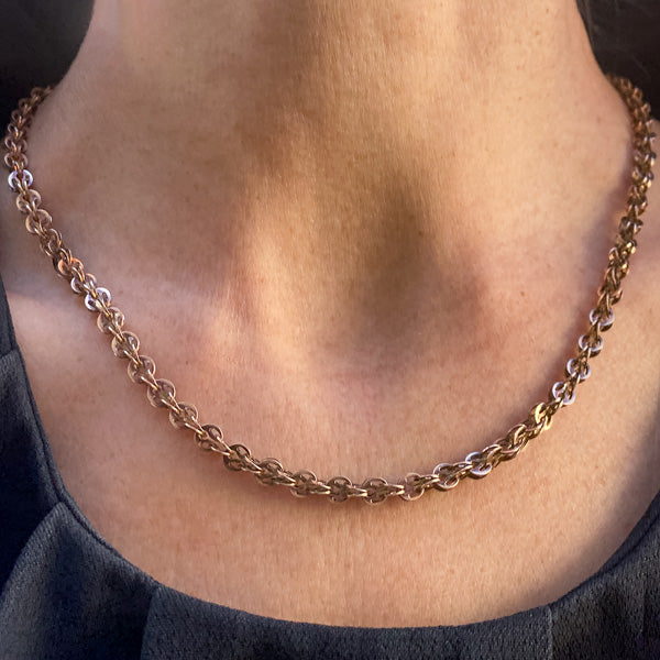 Measuring approx. 5mm wide, fashioned in 9k rose gold. 17.6g. Length 19 1/4 inch.