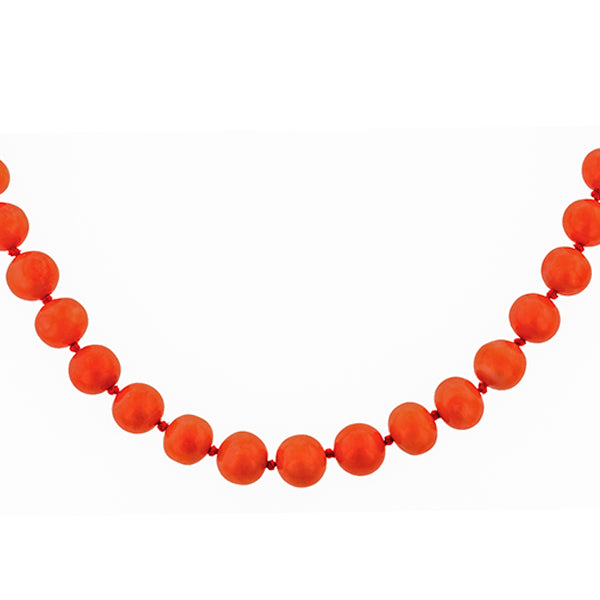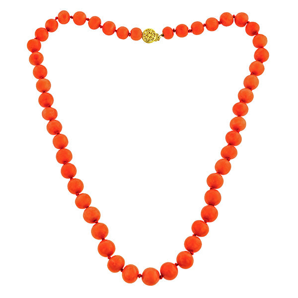 Ranging in size from 8.5-10.5mm. With 14k yellow gold filigree clasp. Length 21 inches.