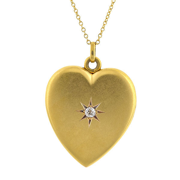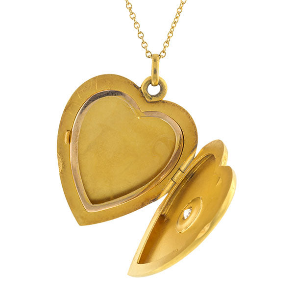 Antique Diamond Heart Locket Pendant Necklace