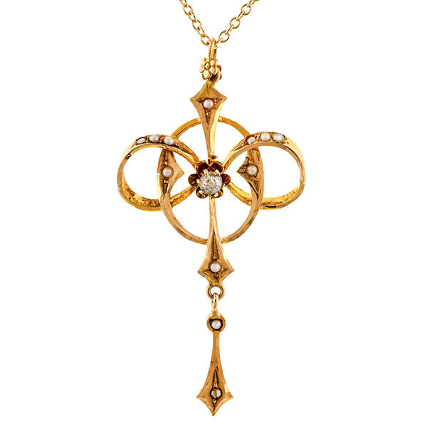 Antique Diamond & Pearl Lavalier Pendant Necklace