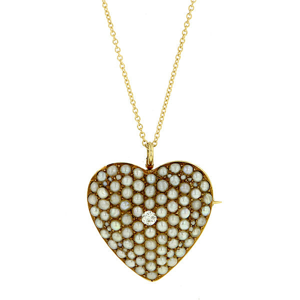 Antique Diamond & Seed Pearl Heart Pin/Pendant