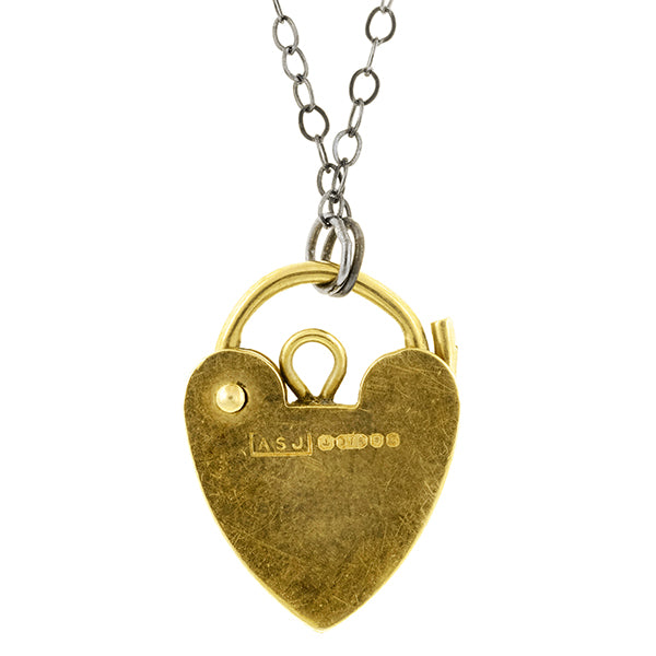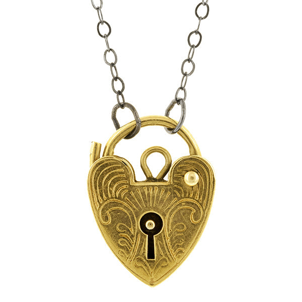 Antique Engraved Heart Padlock Pendant