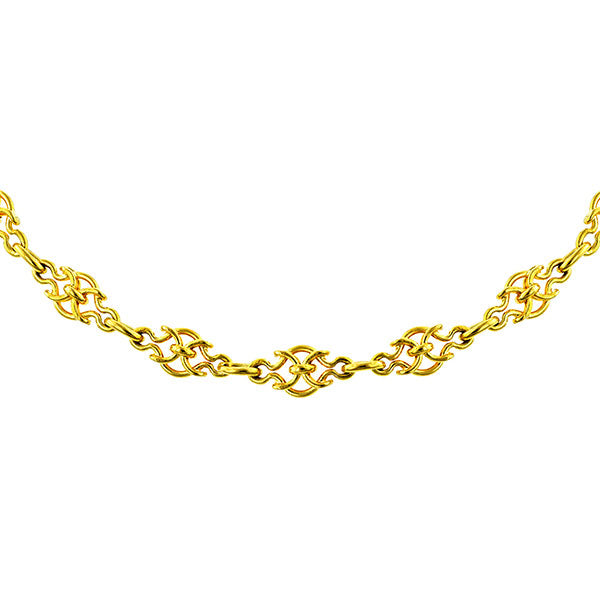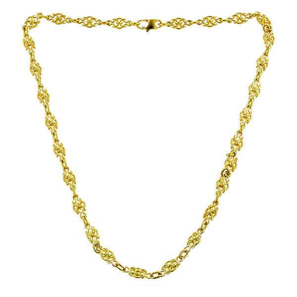 Filigree chain with, fashioned in 18k gold. Length 15 3/4 inches. Circa 1900 (lobster claw catch is a later replacement).