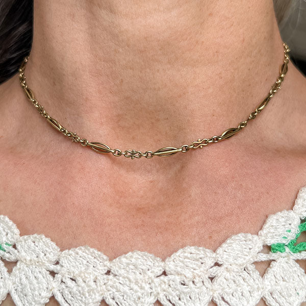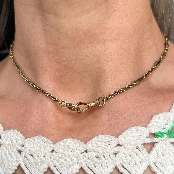 Measuring approx. 3.7mm wide, fashioned in 14k yellow gold. Length 14 5/8 inches with spring ring and swivel clasp.