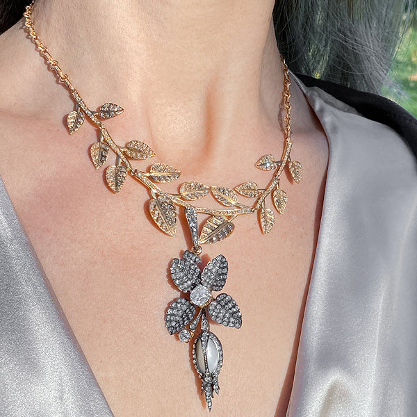 Antique Floral & Foliate Motif Diamond Necklace / Brooch