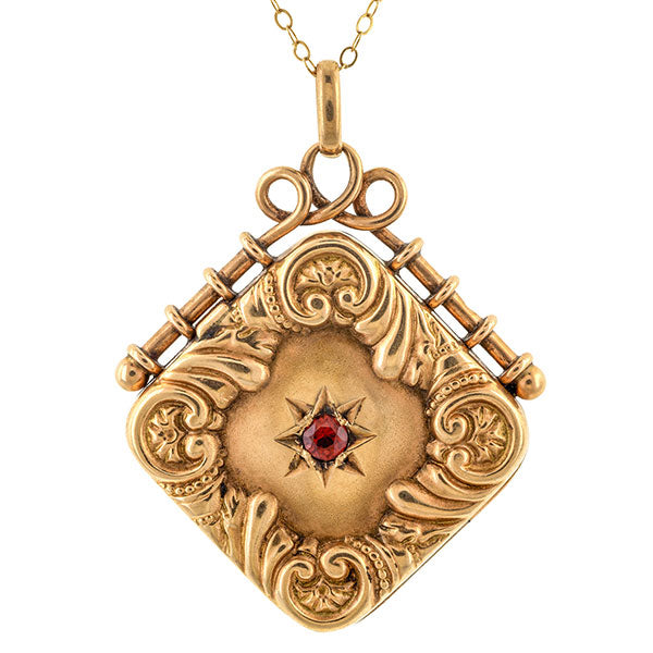 Antique Garnet Locket Necklace