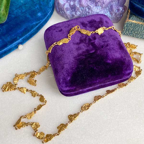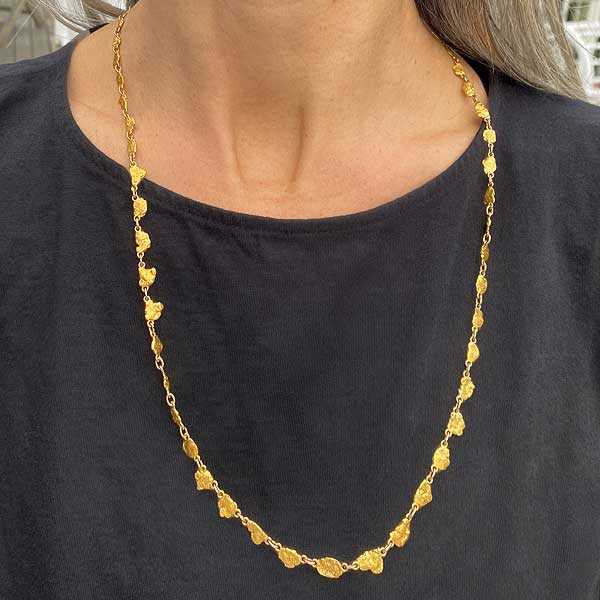 Measuring approx. 1/4 inch wide, fashioned in 24k yellow gold. With a 14k yellow gold clasp. Length 25 1/2 inches.