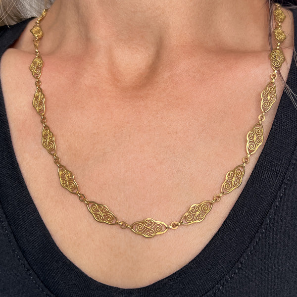 Antique Filigree Link Chain Necklace